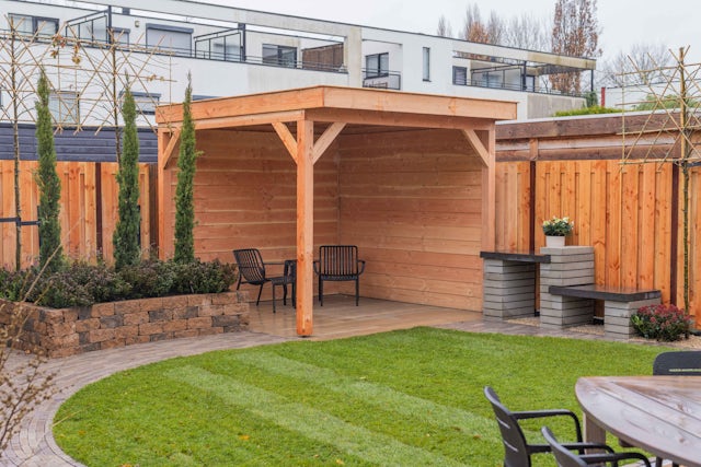 In deze tuin is gebruik gemaakt van een douglas schutting met 19 planken. Dit type hout is uitermate geschikt voor gebruik in de tuin met een natuurlijke levensduur van 15 jaar. Wil je een schutting die nog langer meegaat? Behandel het hout dan regelmatig met beits om de levensduur te verlengen. Daarnaast biedt de schutting optimale privacy dankzij de samenstelling van de planken. Deze schutting heeft namelijk 19 planken: hoe meer planken, hoe minder doorkijk. Doordat deze schutting 19 planken heeft, kun je dus rustig in de tuin zitten zonder inkijk van de buren.