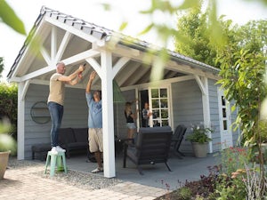 Vuren wordt veel gebruikt in de tuin: voor schuttingen, blokhutten maar bijvoorbeeld ook voor overkappingen.