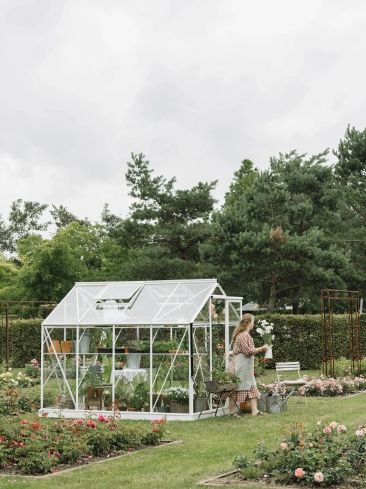 Tuinkas Mary van Royal Well is een elegante kas die niet alleen genoeg ruimte biedt om te kweken, maar ook om te ontspannen. Dit model met puntdak en schuifdeur met haakslot combineert functionaliteit met stijl, en is perfect voor iedereen die van tuinieren houdt. Het 3 mm dikke veiligheidsglas wordt bevestigd met dempend foamtape aan de binnenzijde en PVC beglazingstrips aan de buitenzijde, die eenvoudig te installeren zijn en naadloos aansluiten bij de kleur van de profielen. De meegeleverde, stevige fundering zorgt voor een stabiele basis, geschikt voor zowel onverharde als verharde ondergronden.De kas is uitgerust met dakgoten en twee regenpijpen, waarmee je regenwater kunt opvangen. Mary I heeft 1 dakraam, Mary II heeft 2 dakramen en Mary III en IV hebben 4 dakramen, wat zorgt voor een uitstekende ventilatie. Met een nokhoogte van 245 cm biedt deze kas een ruimtelijk en open gevoel, ideaal voor comfortabel kweken. Tuinkas Mary is verkrijgbaar in vier verschillende dieptematen, met oppervlakken variërend van 4,6 tot 9 m². Dit model is leverbaar in drie kleuren: wit, groengrijs en zwart – en de profielen hebben een stijlvolle matte afwerking. Tuinkas Mary van Royal Well is de perfecte keuze voor iedereen die stijlvol en functioneel kweken wil combineren.